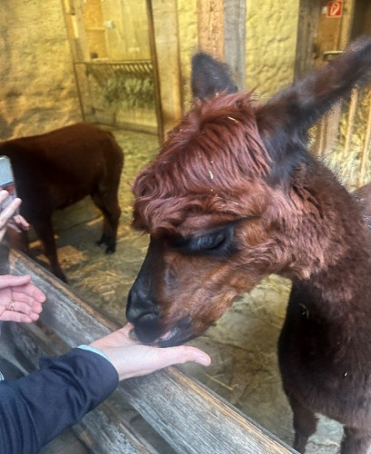 Während einer spannenden, rund eineinhalbstündigen Führung konnten wir viele nachtaktive Tiere beobachten, die man tagsüber kaum zu Gesicht bekommt – darunter Pumas, Geparden, Affen und andere faszinierende Bewohner des Zoos. Besonders aufregend war es, als einige der Mädchen die Gelegenheit nutzten, eine Schlange zu streicheln oder verschiedene Tierfelle anzufassen und so die Unterschiede hautnah zu spüren. Ein weiteres Highlight war das Füttern der Alpakas, was allen großen Spaß machte.