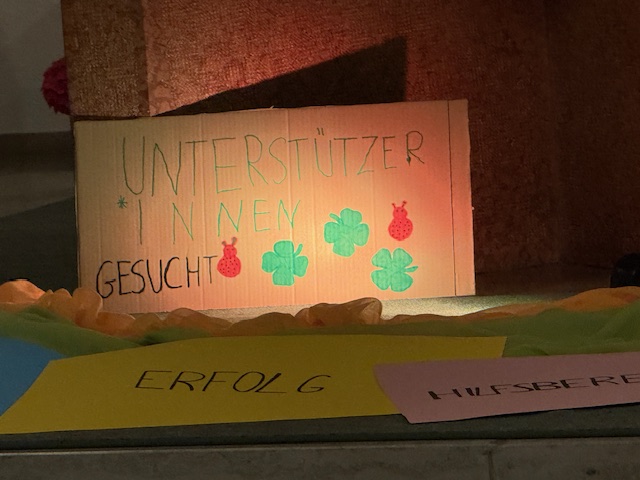 Dazu gehören Veranstaltungen, eine Meditation, Reden und gute Wünsche. Unter dem Motto „Zukunft beginnt mit mir!“ versuchten wir ihnen auch das Wort „Hoffnung“ nahezubringen. Wie könnte man Hoffnung übersetzen: „Es wird schon!“ Das ist die einfachste Übersetzung.