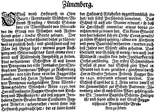 Auf diese seine exponierte geographische Lage weist schon Michael Wening in seiner Topographie von Bayern aus dem Jahre 1701 hin. Hier heißt es: