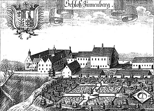 Schloss Zinneberg zur Zeit der Fugger, Süd-West-Ansicht, M. Wening, 1701.