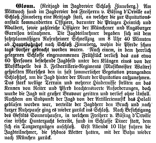 Ein großes gesellschaftliches Ereignis war die alljährliche Hofjagd. Unten ein Zeitungsbericht dazu aus dem Jahre 1908.